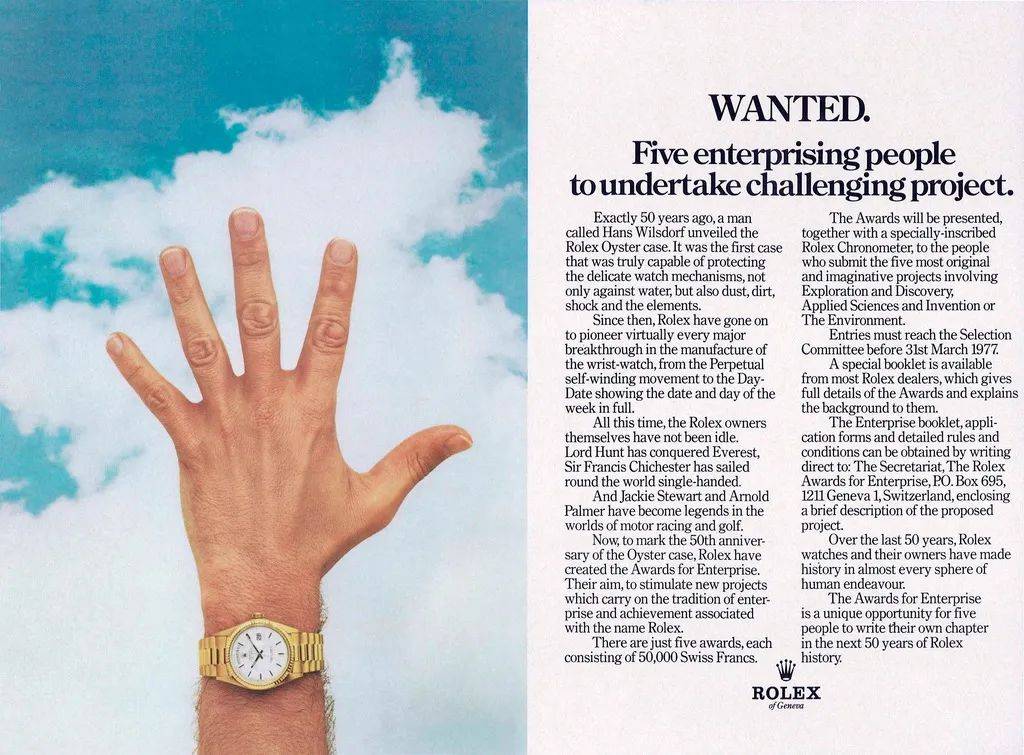 1976年创立劳力士雄才伟略大奖 Rolex