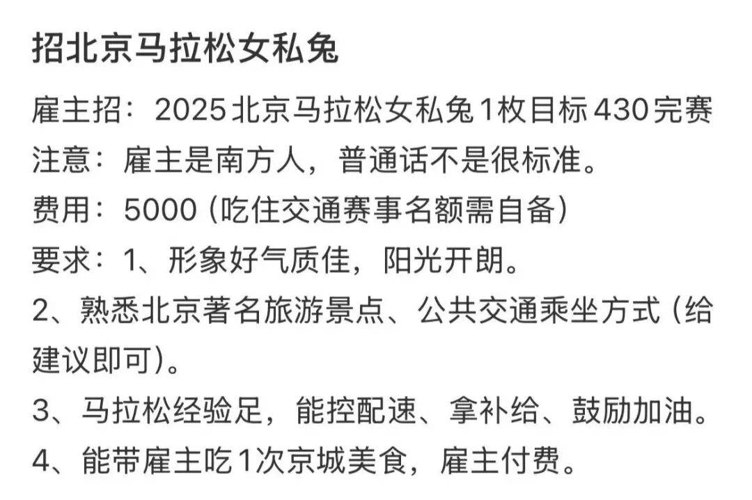 有网友总结无锡马拉松私兔行情,最便宜的一口价666,保证3小时10分钟内完赛,最贵的5999,能带着雇主跑进2小时30分钟内。