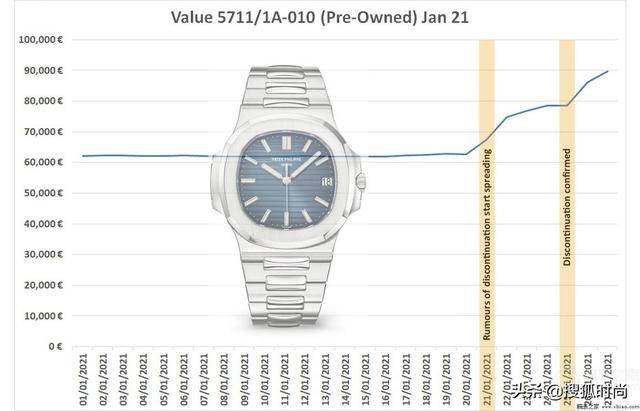 首先,这枚腕表所属的系列与型号——鹦鹉螺5711/1A系列,本身就是买家聚焦的热门款,这一2006年上市的腕表在最近几年备受市场热捧,而在今年年初,百达翡丽的掌门人菲力·斯登(Philippe Stern)又官宣了一个爆炸性的消息,这款大热表款将会停产,根据斯登先生接受采访时的回复,百达翡丽不想看到百达翡丽产品的金字塔尖被单一的表款所占据,停产5711,既是为了保护百达翡丽的品牌,也是为了保护顾客的利益。当然,这一决定又直接导致5711升值了25%。