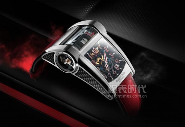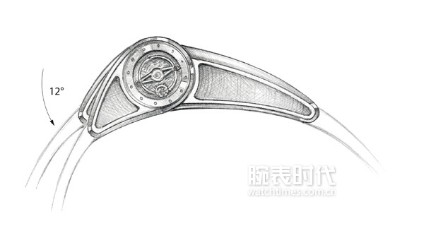 Bugatti Type 390的表壳设计源于布加迪Chiron的流体曲线。表壳围绕气缸结构打造,可围绕其驱动轴旋转12°。此项技术正在申请专利,可谓是腕表设计领域的一个大胆创新。