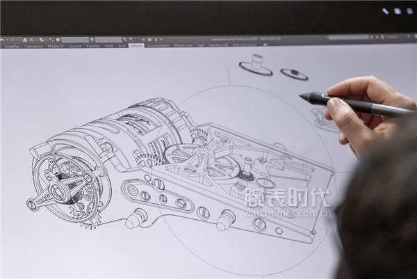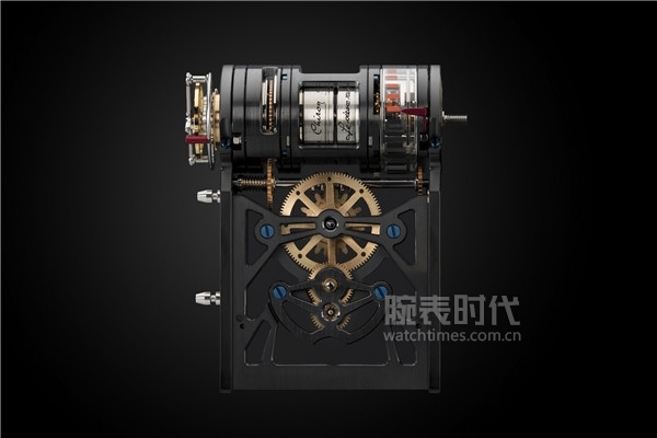 PF390气缸式机械机芯采用三角形耦合设计,可实现两个发条盒的自动定心,而串联式连接可保证恒定的能量传递——如同Chiron超跑上燃油压力调节器一样,可以实现速度调节,确保最佳计时。
