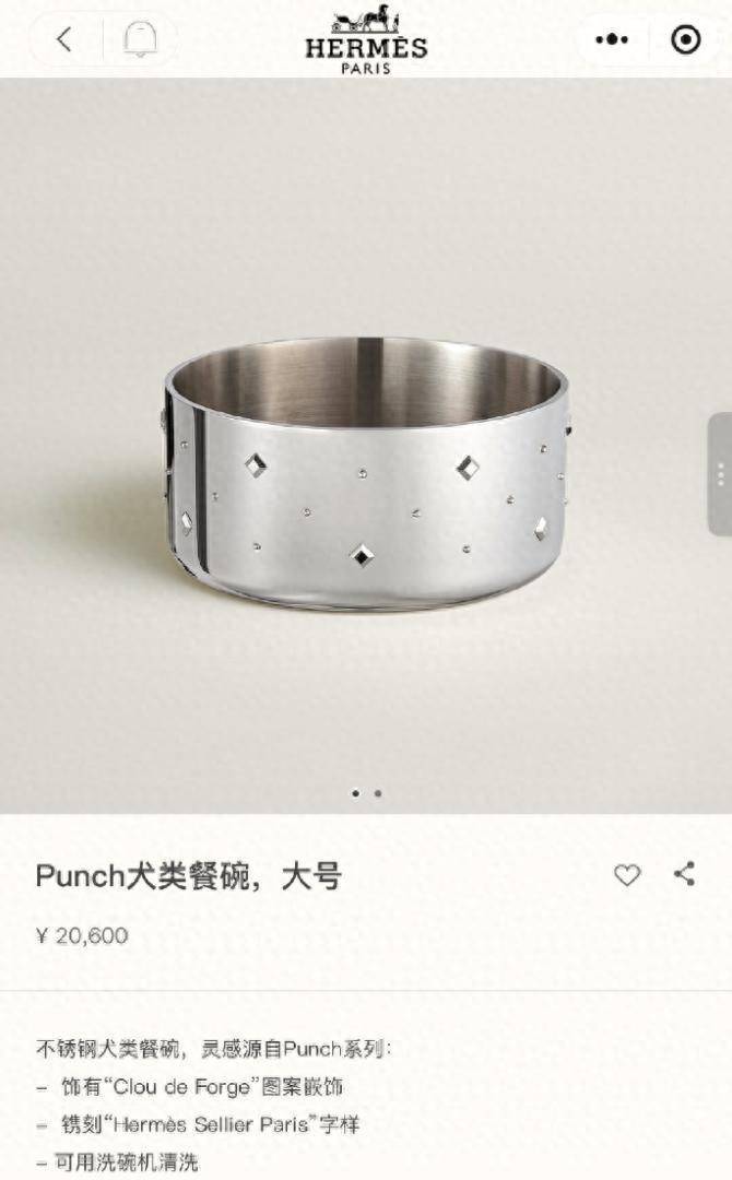 近日,有网友发现爱马仕官网上架了两款不同尺寸的不锈钢犬类餐碗,定价分别为18300元和20600元。产品介绍页显示,这款犬类餐碗材质为100%不锈钢,为法国制造。