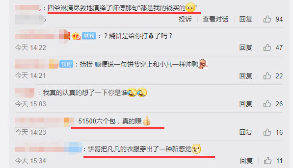 照片一经烧饼贴出,在网络上迅速发酵引发热论,评论区一位粉丝指出了关键所在:“5万六个包,真的赚。”